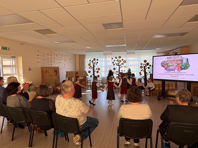 Pasākumā pulcējās 9 pensionētie “Rūķīša” seniori - metodiķe, auklītes, skolotājas, remonstrādnieks un veļas pārzine, kuriem iestādes kolektīvs un bērni sagatavoja pārsteigumus: bērnu čaklām rokām gatavotus apsveikumus, jautras dziesmas un rotaļas, rudens ziedu pušķus, gardu cienastu.