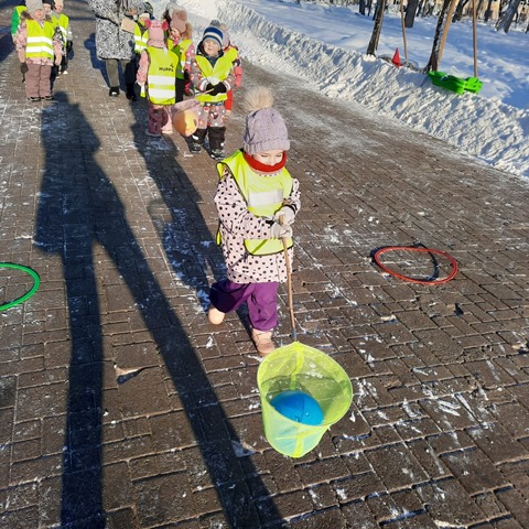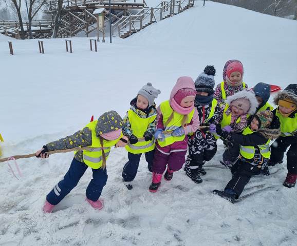 Kad ziema īpaši lutina ar bagātīgu sniega segu un jaukiem laika apstākļiem, “Rūķīša” audzēkņi ar prieku dodas ārā izmēģināt ziemas sporta aktivitātes. Mazākie audzēkņi sportoja iestādes teritorijā, pārvarot dažādus šķēršļus, metot sniega pikas mērķī, vizinot viens otru ar ragavām.